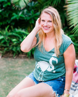 Quick view Compare The Admiral's Daughter V-Neck Sleeveless Tee with Holiday Flamingo Print Green V-Neck Sleevless Tee with Holiday Flamingo print. Available for a limited time only! Materials… Now $36.00 Choose Options